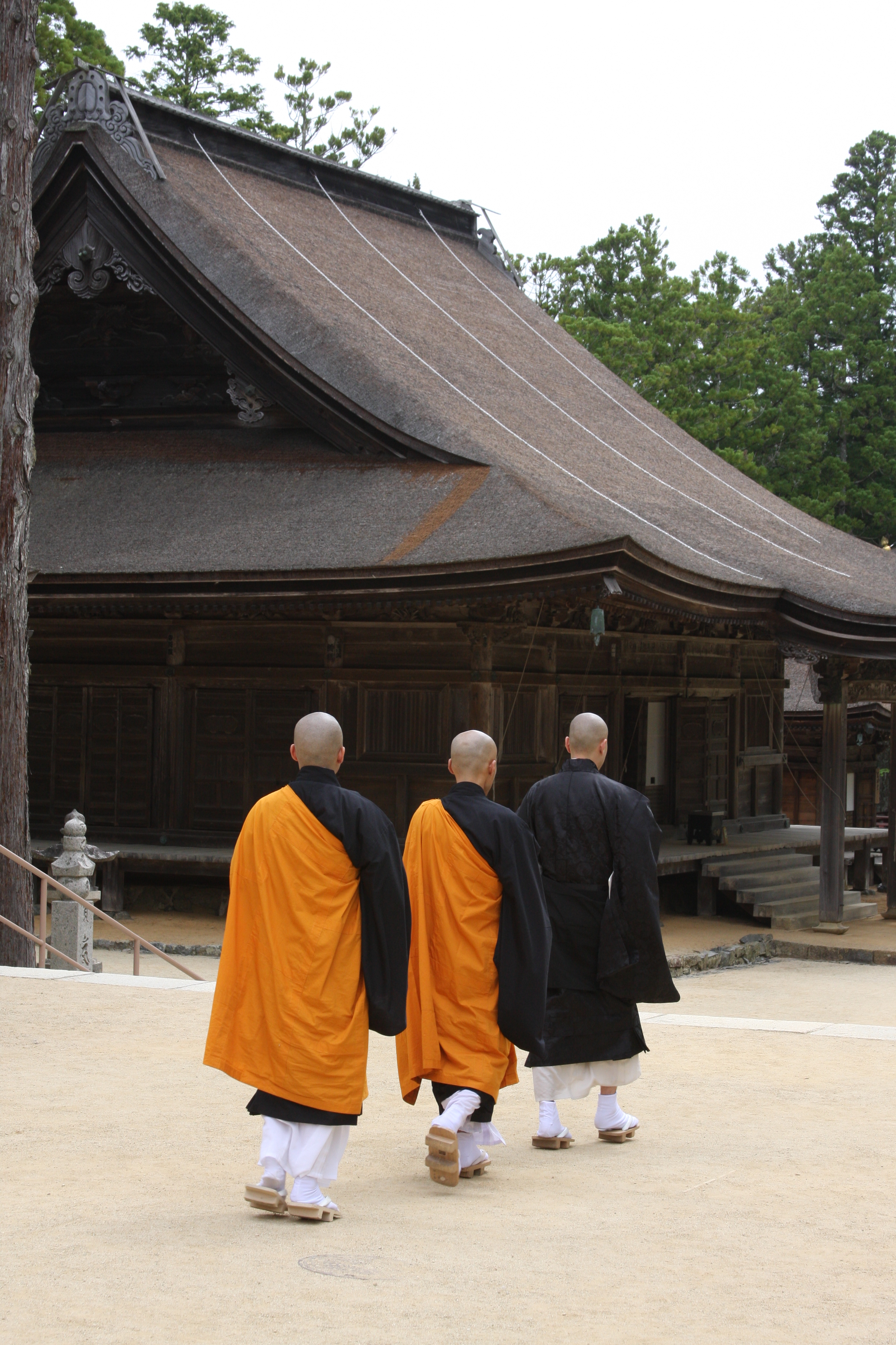 Las pequeñas mesas ocupaban todo el kondo. El gran salón que precede a la parte reservada para el lugar más sagrado, un espacio normalmente vacío y que en ese momento ocupaban, sentadas sobre el suelo, unas doscientas personas. Le colocaron junto a otra pareja de occidentales al lado de una columna que le hacía difícil ver el ritual que en ese momento daba comienzo. Sobre la mesa un pincel, tinta, una piedra secante y papel de arroz donde estaba impresa la oración que acababan de recitar los monjes. Los fieles japoneses ya habían empezado, incluso antes de que los monjes orasen y les dieran su bendición, a cubrir los caracteres pero él espero a que finalizara la ceremonia. Ya no tenía prisa. No era fácil acostumbrarse al pincel ni a la tinta y lo hacía aún más complicado su postura. La mesa le resultaba demasiado pequeña y no estaba acostumbrado a sentarse sobre el suelo con las piernas recogidas. Al principio la tinta era demasiado liquida y los primeros caracteres quedaron aguados y deslucidos. Se esforzaba en hacerlo correctamente y que la caligrafía fuera lo más nítida posible. Poco a poco fue dominando el pincel dejando que una cantidad exacta de tinta lo cubriera para que los distintos sinogramas quedaran brillantes y puros.